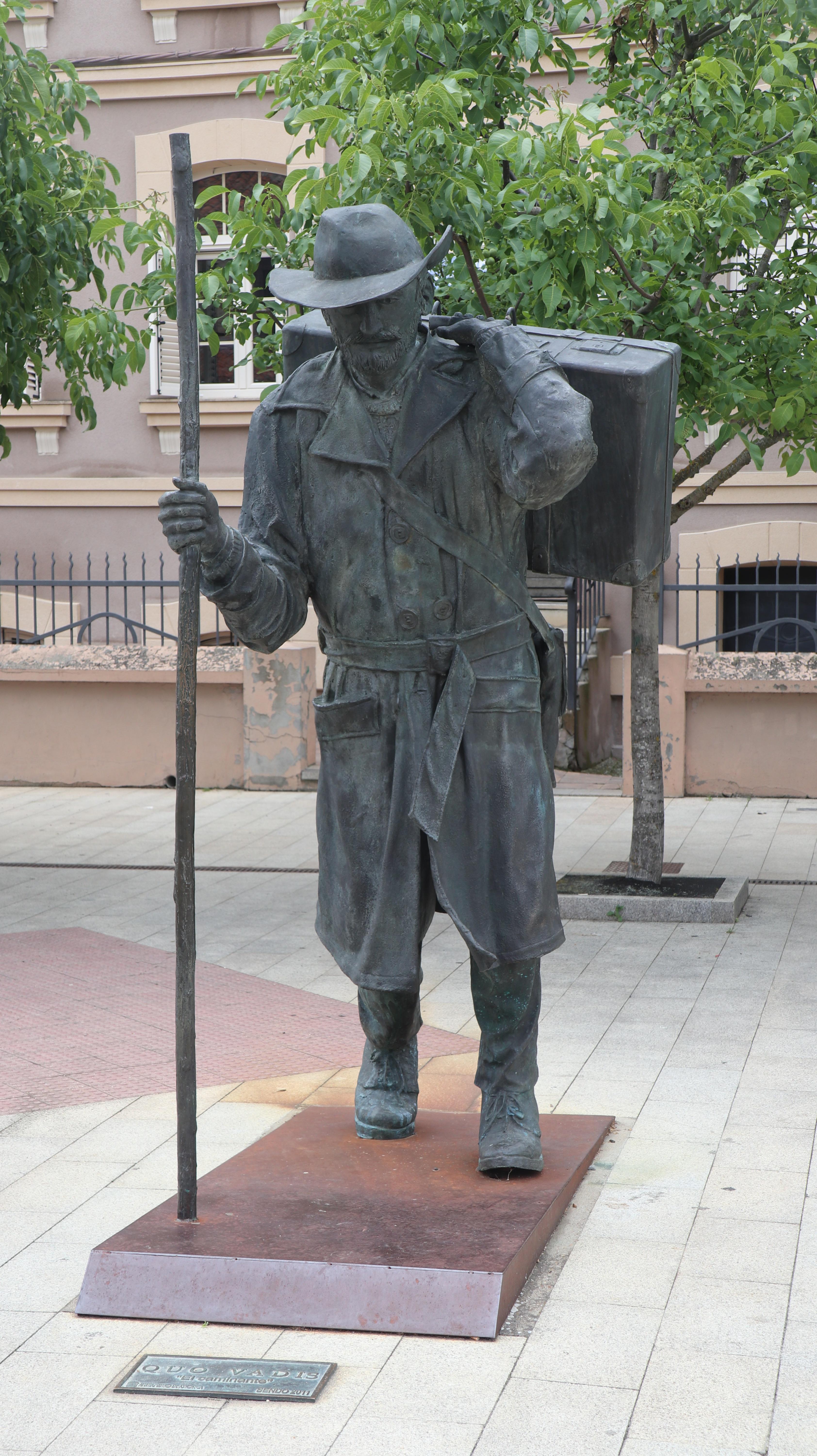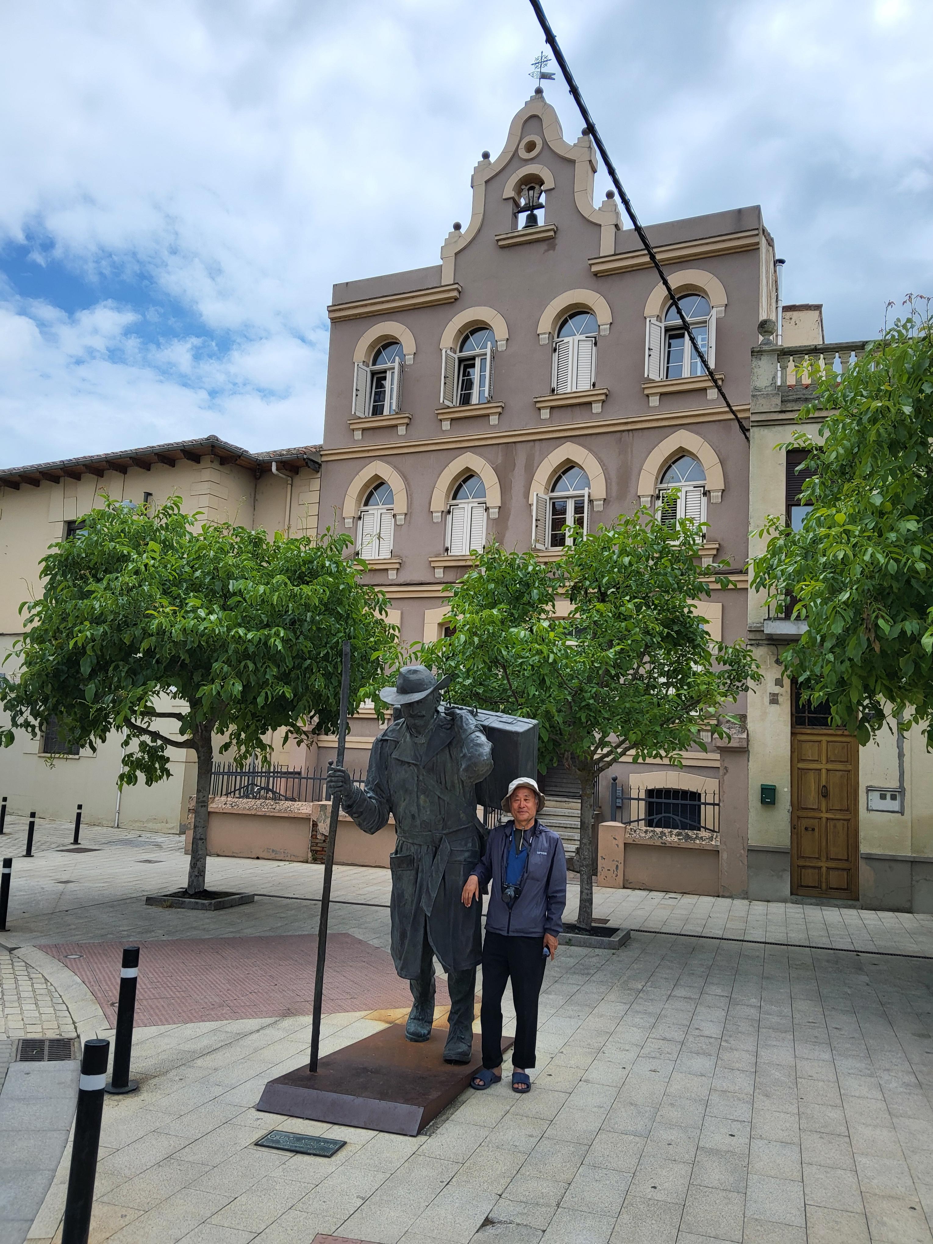 알베르게 앞의 순례자 상