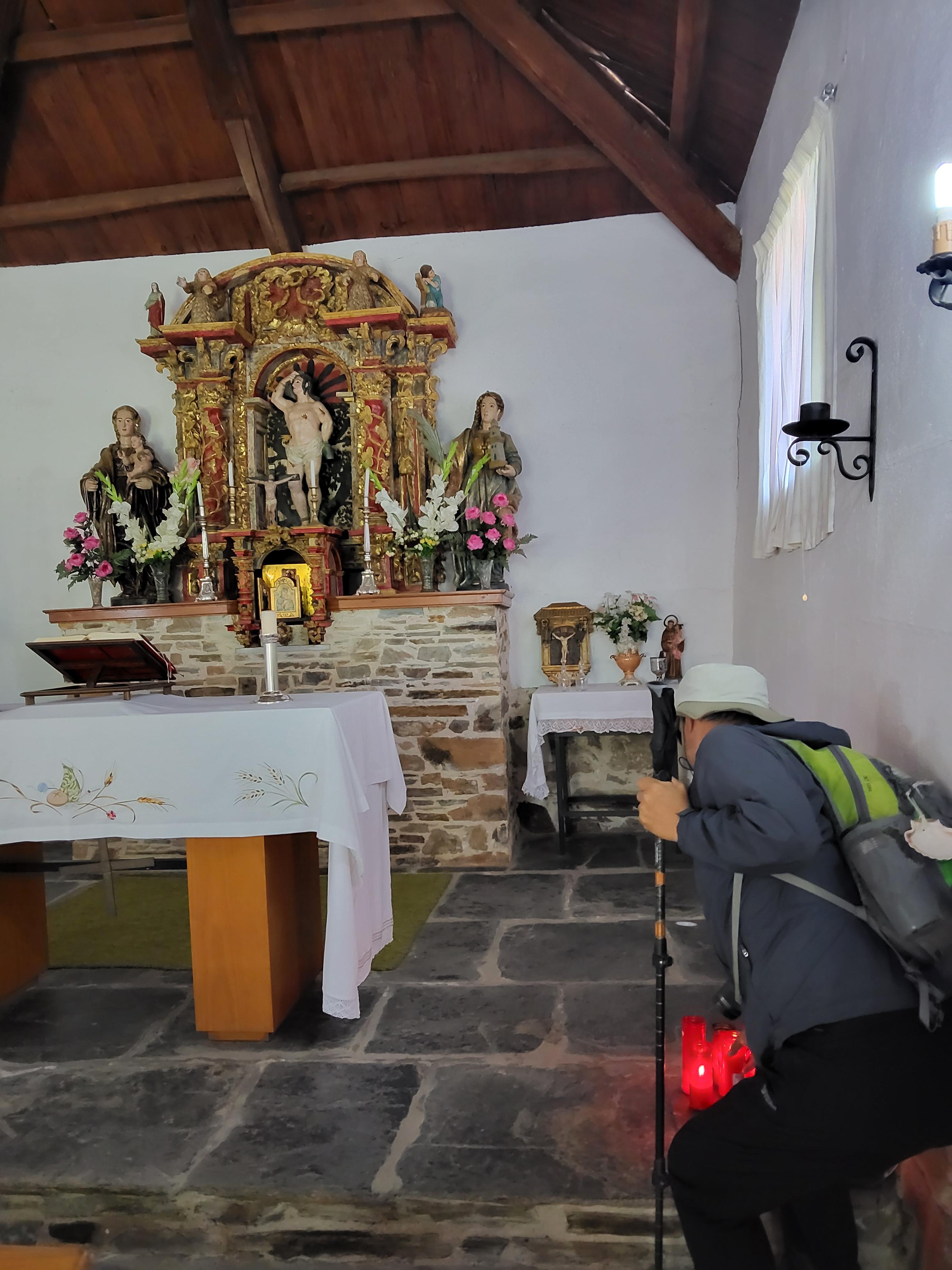 리에고 데 암보로소 마을에 조그마한 예배당이 있다. 현대에 지은 것 같은 건물인데 상당히 정감이 가 들어가니 일반적인 성당과는 조금은 다르게 보이는 조그마한 제단이 있고, 옆에는 기도초를 밝히도록 하여 놓았다. 그곳에서 기도초를 밝히고 잠시 기도를 하고 나와서 다시 길을 계속하니 다소 가파른 돌길을 따라 내려와야 했다. 길은 다소 험하였으나 주변을 돌아보면 경치는 감탄할 만하였다.