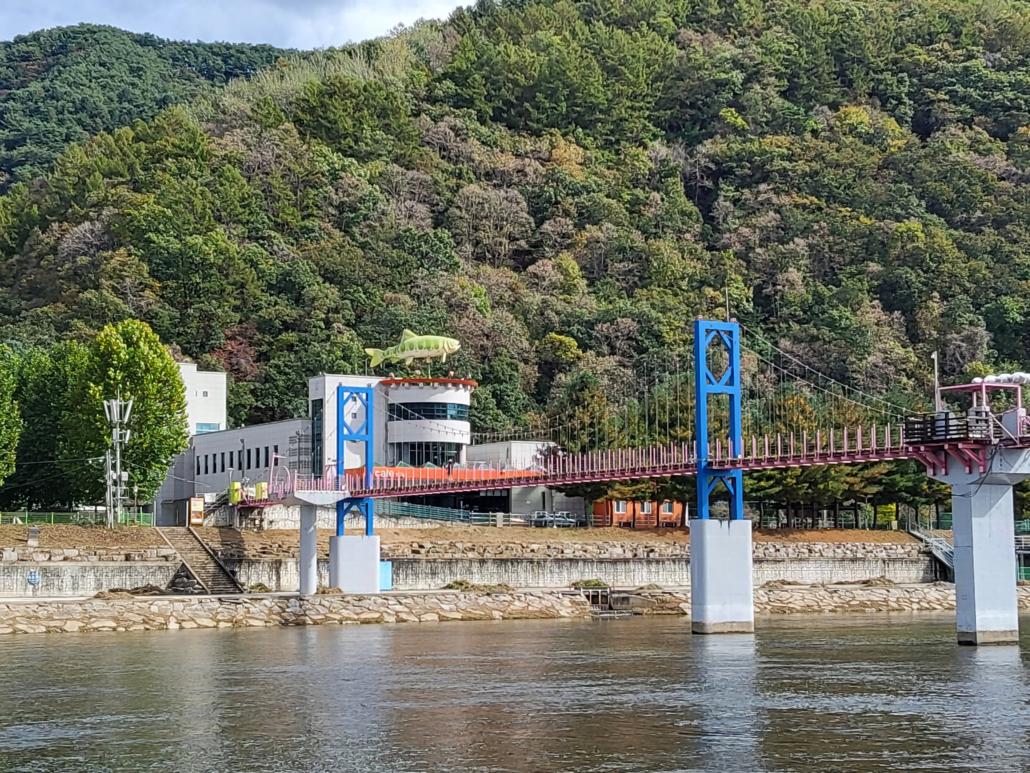 겨울에 산천어축제가 열리는 화천천을 걸어가니 화천대교에서 21코스는 끝이 났다. 점심을 먹을 때가 되어 읍으로 조금 내려가서 산천어가 보이면 먹으려고 했으나 오랜만에 온 화천이라 잘 찾기도 어려웠고 시간도 촉박하여 화천시장의 식당에서 밥을 먹고 쉬었다.
