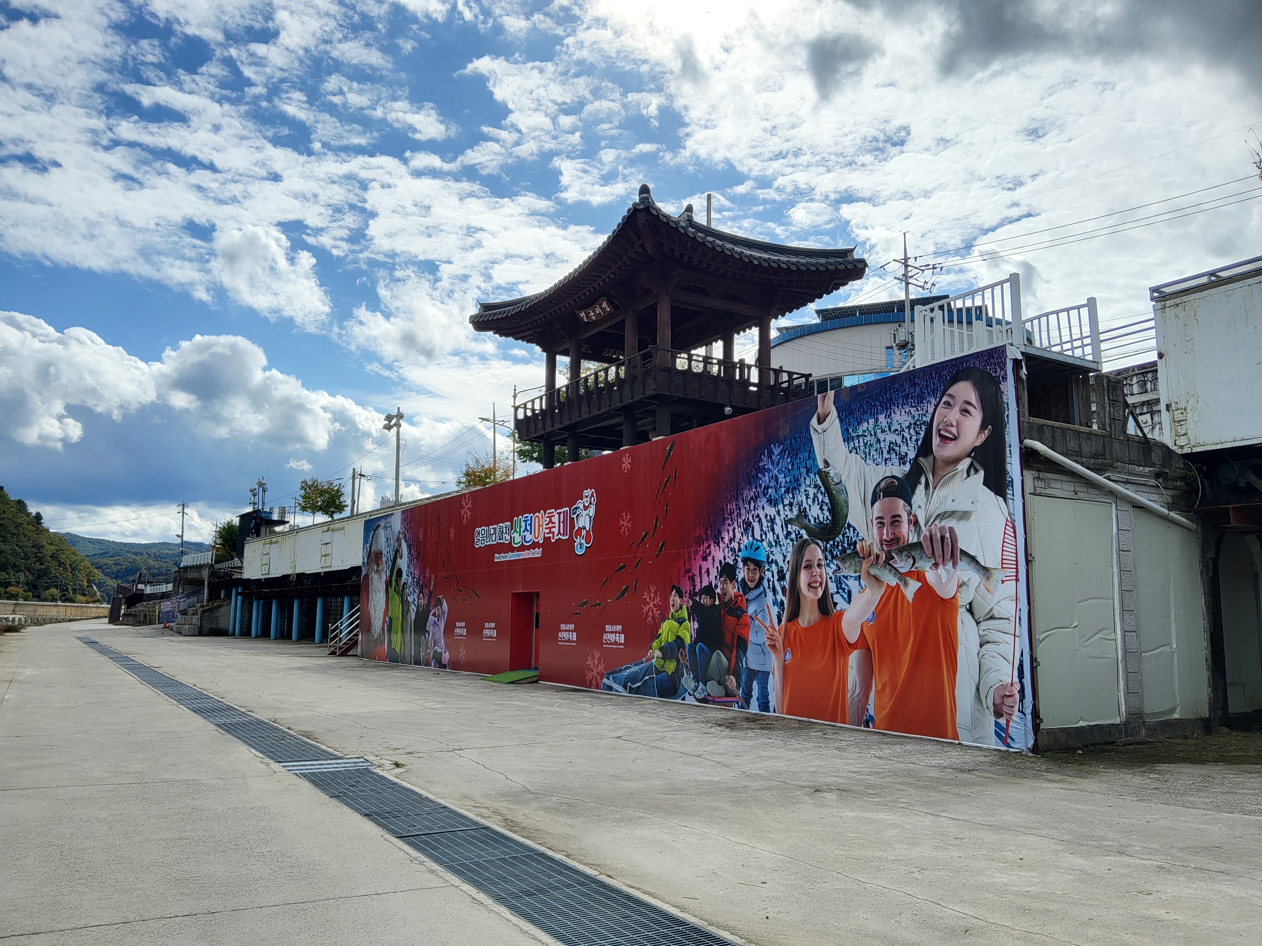 화천천의 산천에축제의 여러 장소(아직 겨울이 아니라 얼음이 얼지 않았다.)