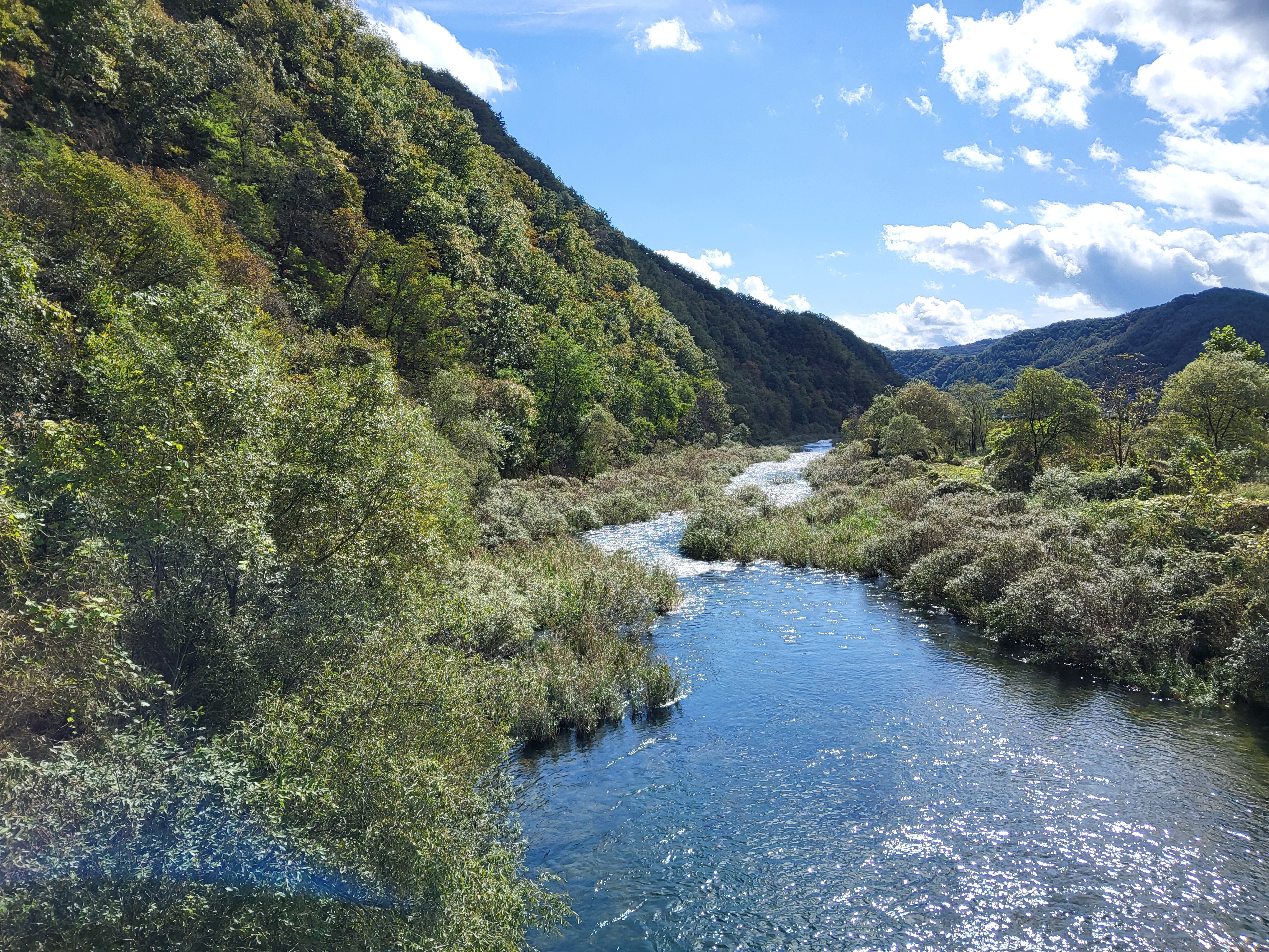 평화의 길 쉼터에서 쉬었다가 다시 만산동계곡을 따라 흐르는 물소리를 들으며 걸어간다. 만산동계곡의 물소리는 위치에 따라 다르게 들리며 청량한 소리가 귀를 즐겁게 한다. 철조망으로 가려져 있어 계곡의 모습을 전부는 볼 수 없고 시야가 트인 부분만 볼 수 있으나 소리는 귀에 계속 들린다. 만산동계곡은 화천읍에서 북서쪽으로 5km 떨어진 곳에 있는 계곡으로 기암괴석이 계곡과 조화를 이뤄 마치 한 폭의 그림을 연상케 한다. 만산동계곡의 물은 청정하고 시원하며, 계곡 주위에는 자연림이 빼곡하게 들어서 있다. 계곡에서는 허용된 곳에서는 물놀이, 낚시 등을 즐길 수 있으며, 근처에는 국민여가캠핑장이 있다. 이 계곡은 여름 피서지로 알려지면서 더위를 피해서 물놀이를 즐기려는 피서객들이 매년 많이 찾고 있다. 그래서 주변에 펜션이나 캠핑장이 즐비하다.