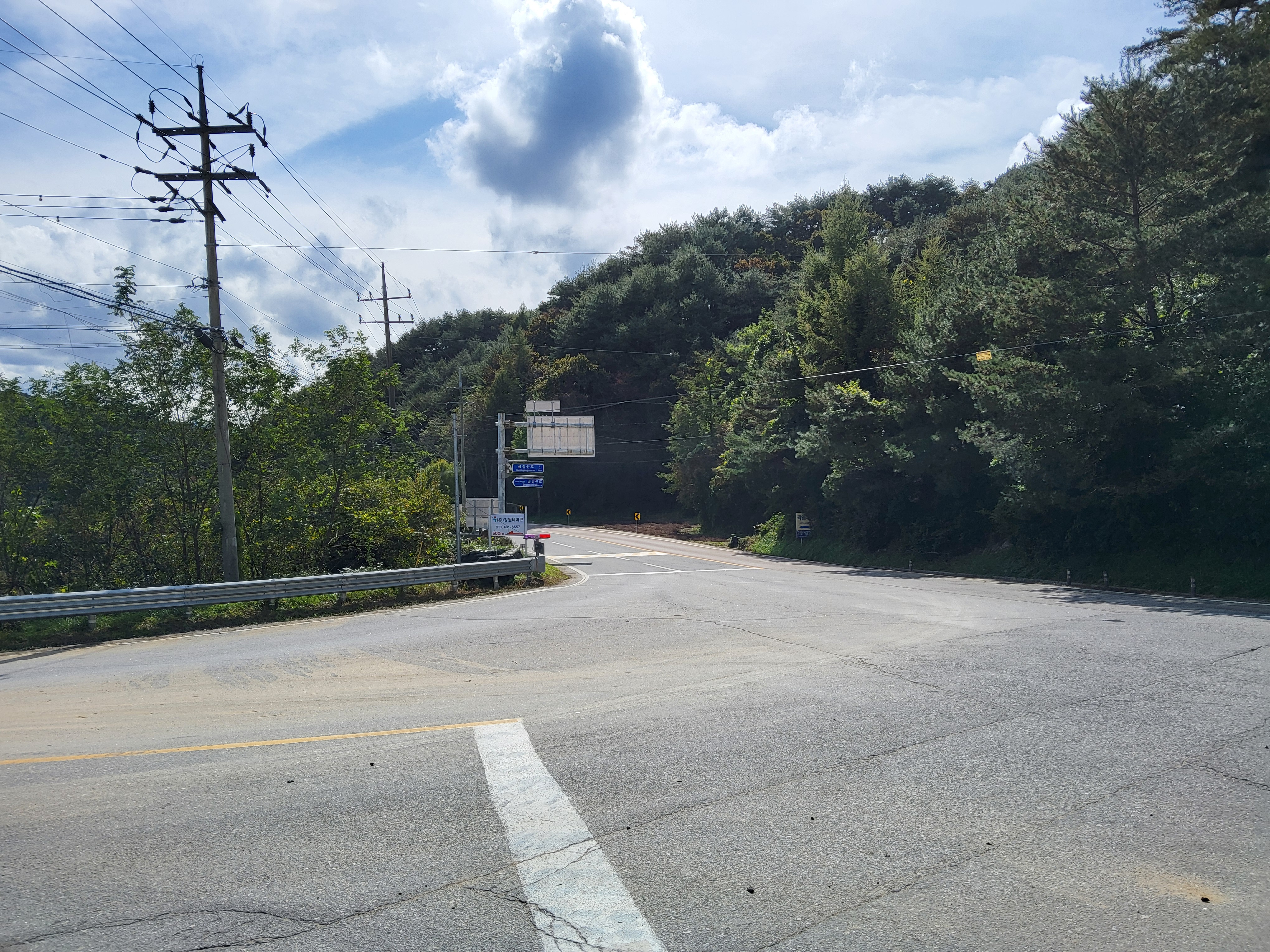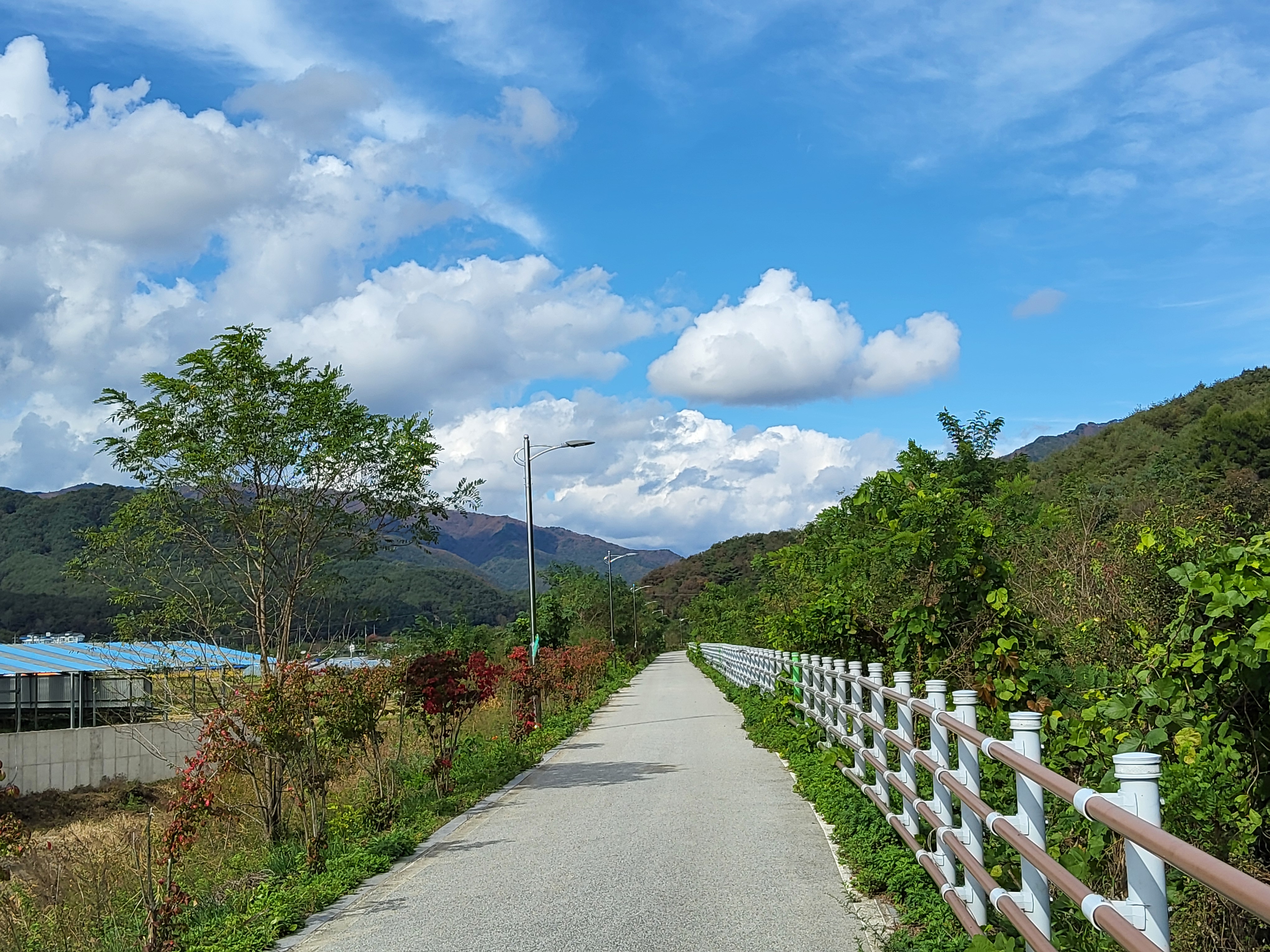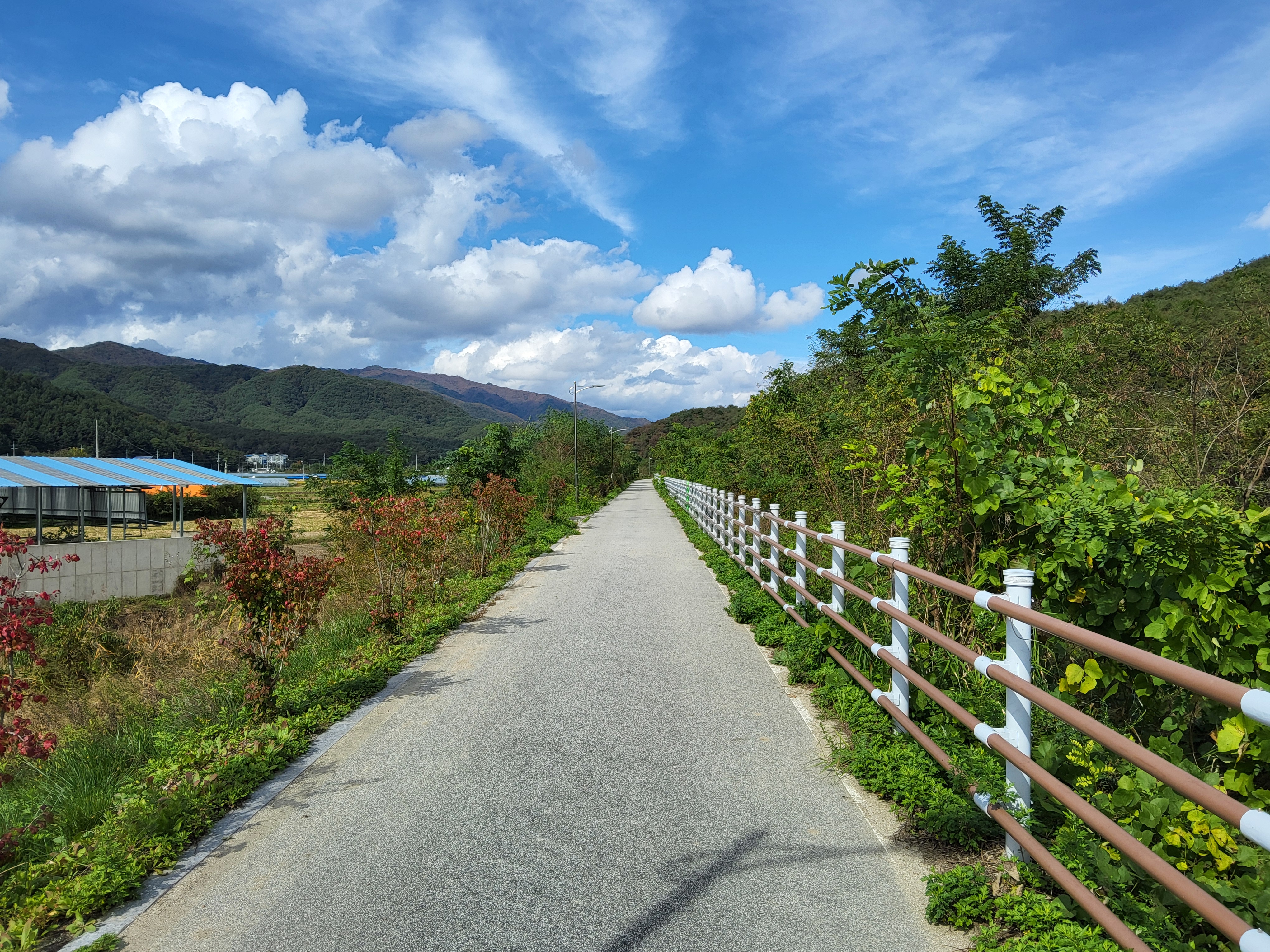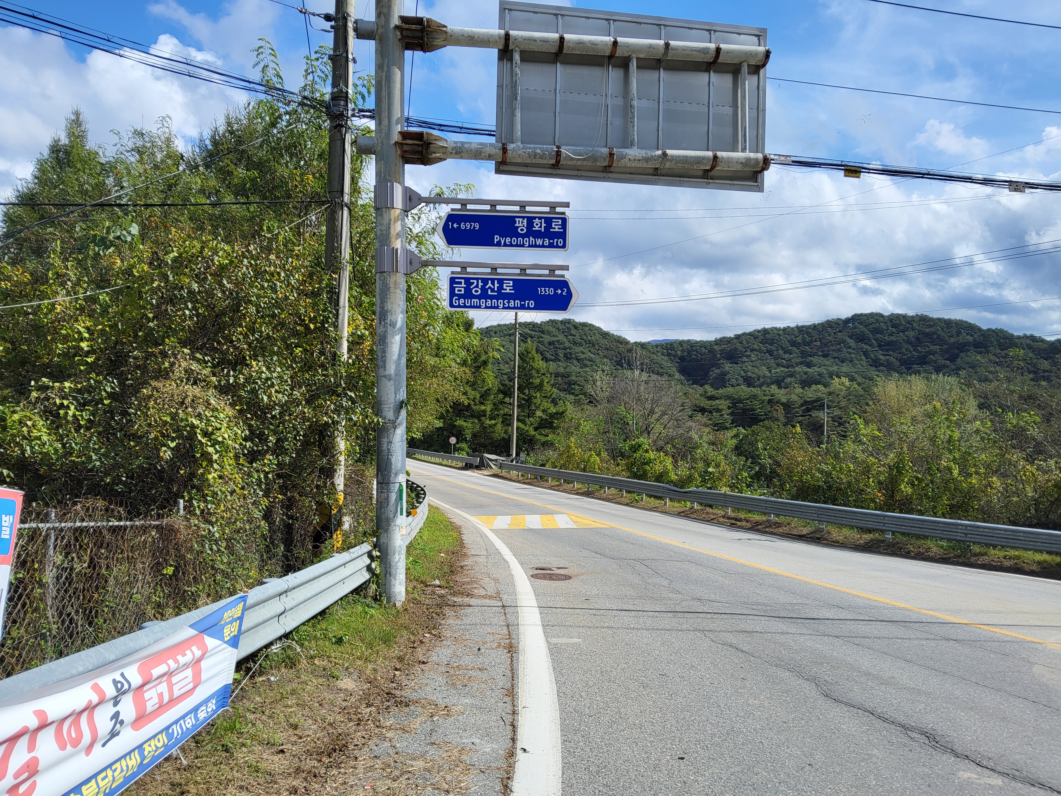 원래는 26코스로 가야 하지만 26코스는 예약 코스로 예약이 되지 않으면 걸을 수 없는 코스라 우회로인 26-1코스로 발을 옮겼다. 두타연갤러리에서 조금 가니 버스정류소가 있어 조금 기다리니 버스가 와서 타니 요금을 받지 않는다. 기사님이 말하기를 양구의 버스는 모두 무료라고 하였다. 이렇게 군내 버스를 운행하는 지자체가 있음에 감사한 마음으로 버스를 타고 가는데 승객은 나 하나였다. 도사삼거리에서 내려서 금강산로라고 이름이 붙은 길을 따라 걸으니 번화한 도시의 거리는 아니나 사람이 사는 집들이 계속 이어져 있는 길이어서 한적함은 없지만 그래도 조용한 길이었다.
