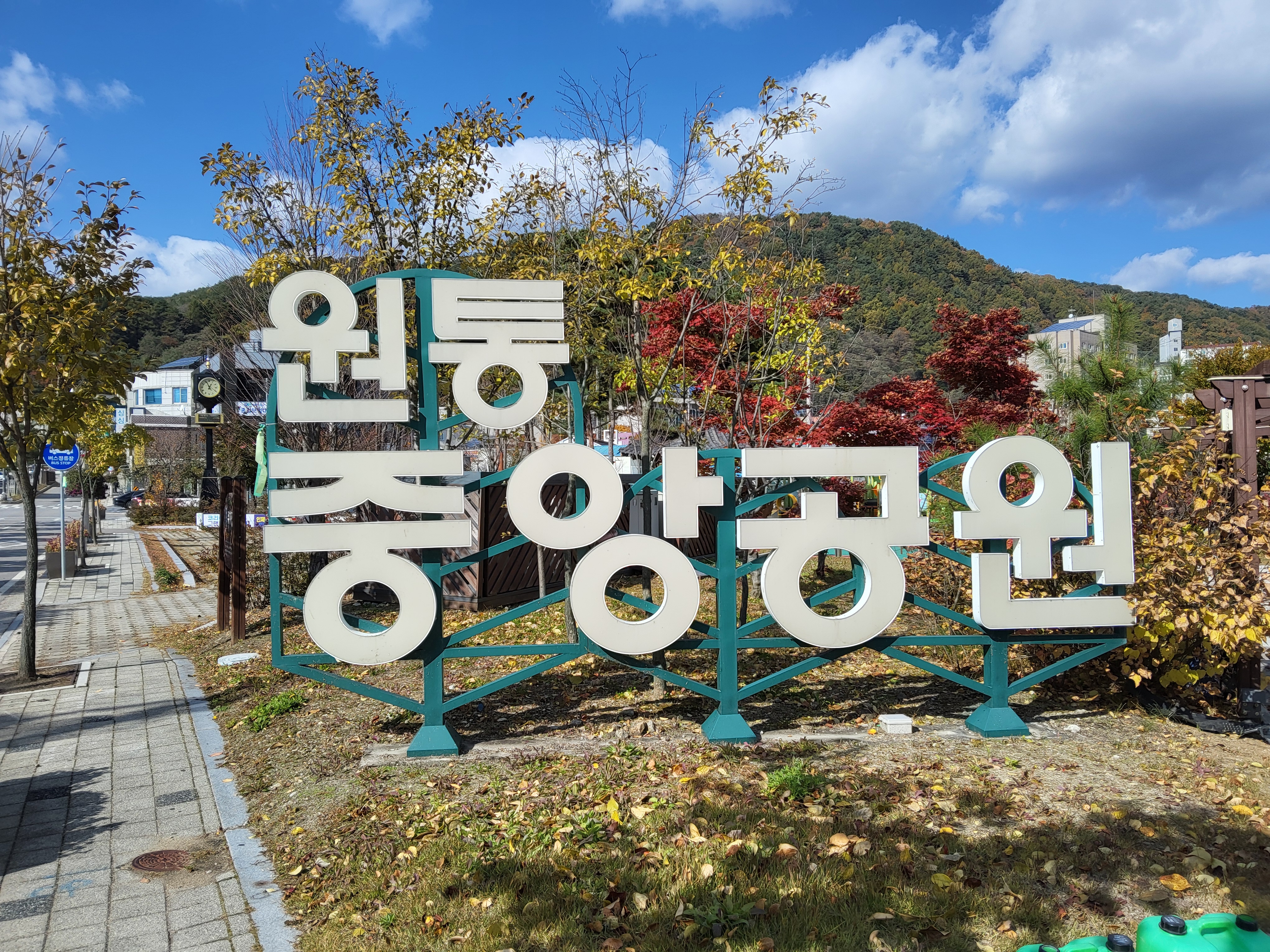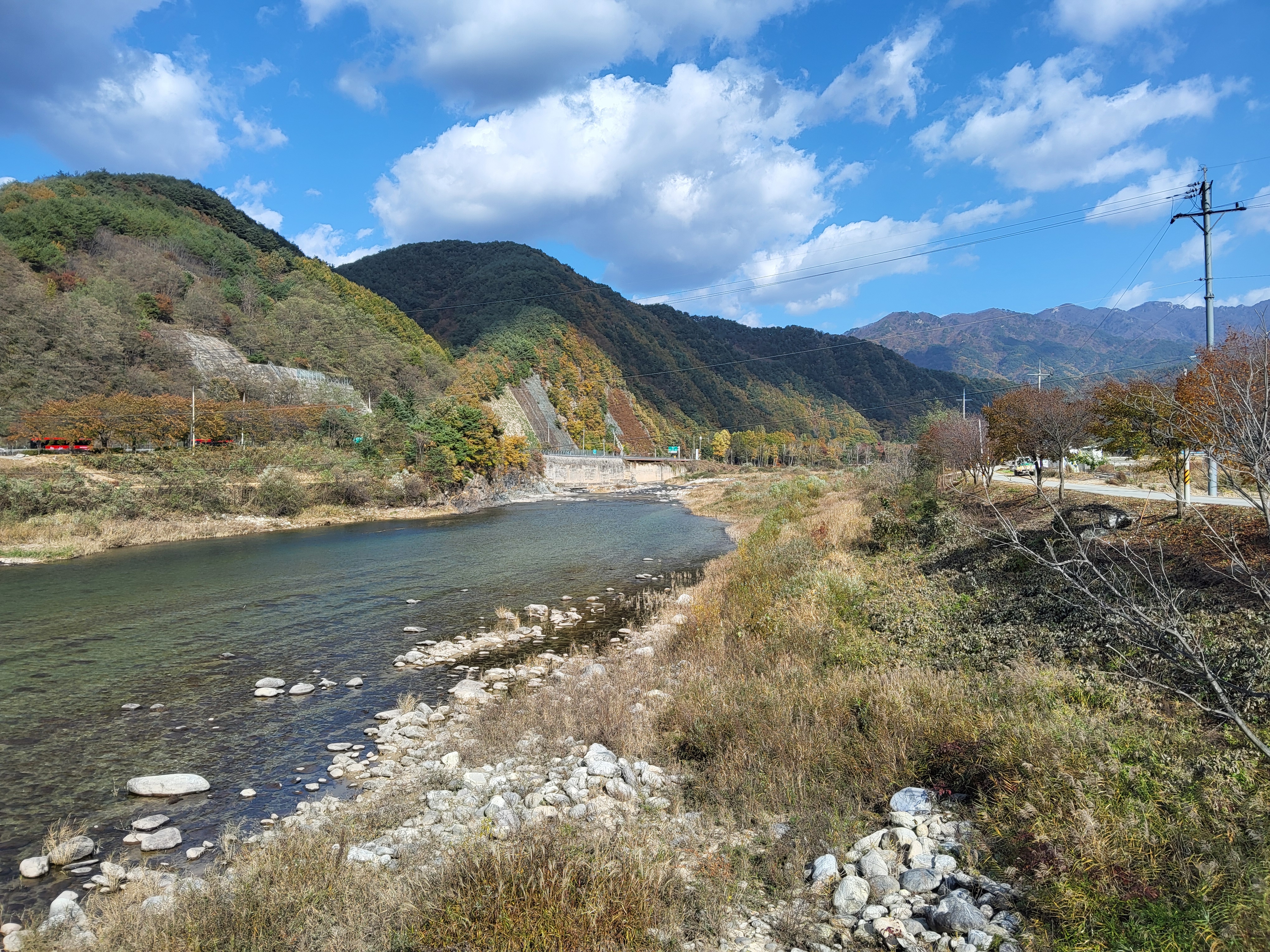 원통 중앙공원을 출발하여 단풍이 든 큰 도로를 따라가다가 북천을 따라 걸었다. 북천(北川)은 인제군 북면 용대리 용대교에서 발원하여 하류로 가면서 인북천, 소양강과 만나 소양호로 흘러간다. 북천은 북면에서 그 이름이 유래되었는데 북면은 현(顯) 소재지에서 북쪽에 위치하였다 해서 붙여진 이름이다.