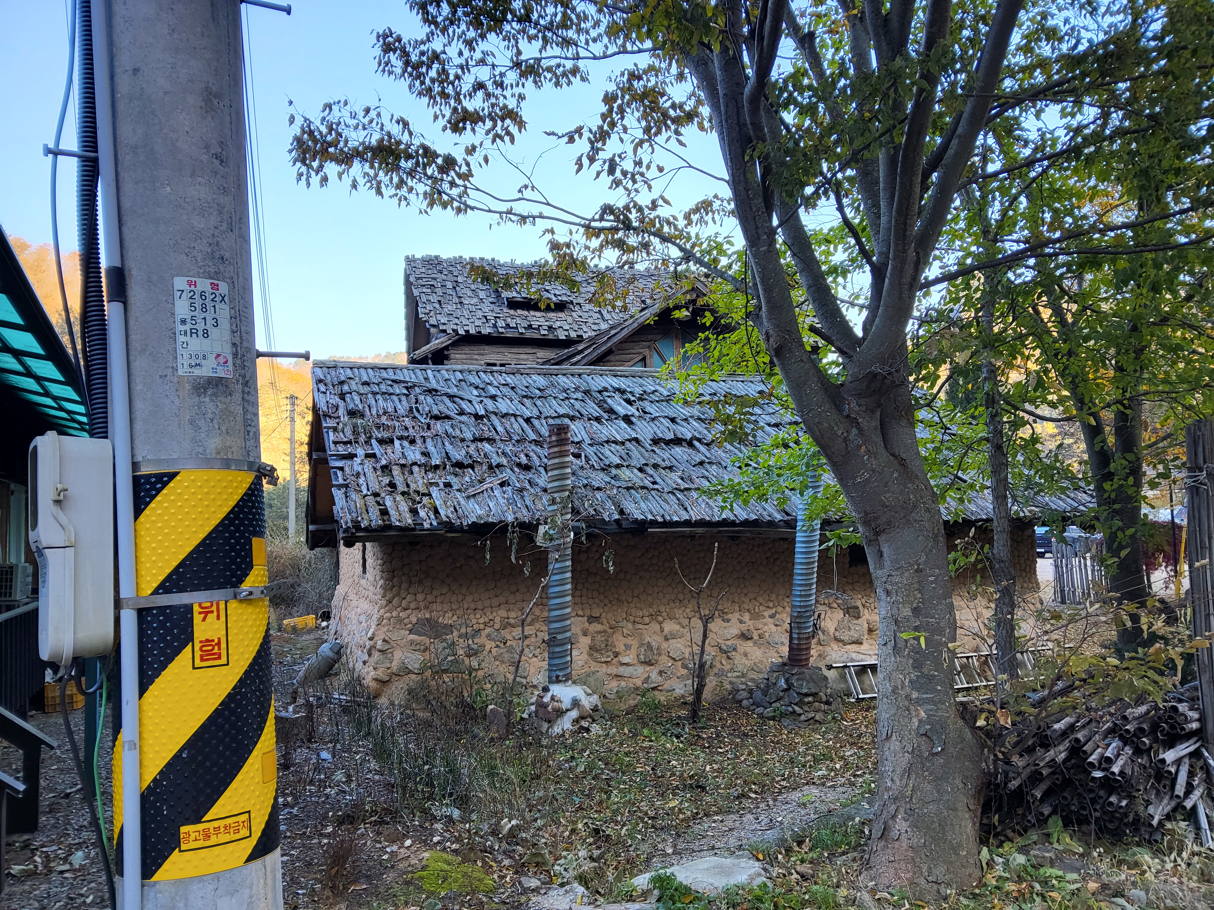 백공미술관을 지나 용대삼거리로 가는 길가에 너와집이 보인다. 전통 너와집과는 좀 다르지만 그래도 요즈음은 거의 볼 수 없는 집이라 눈길이 갔다.