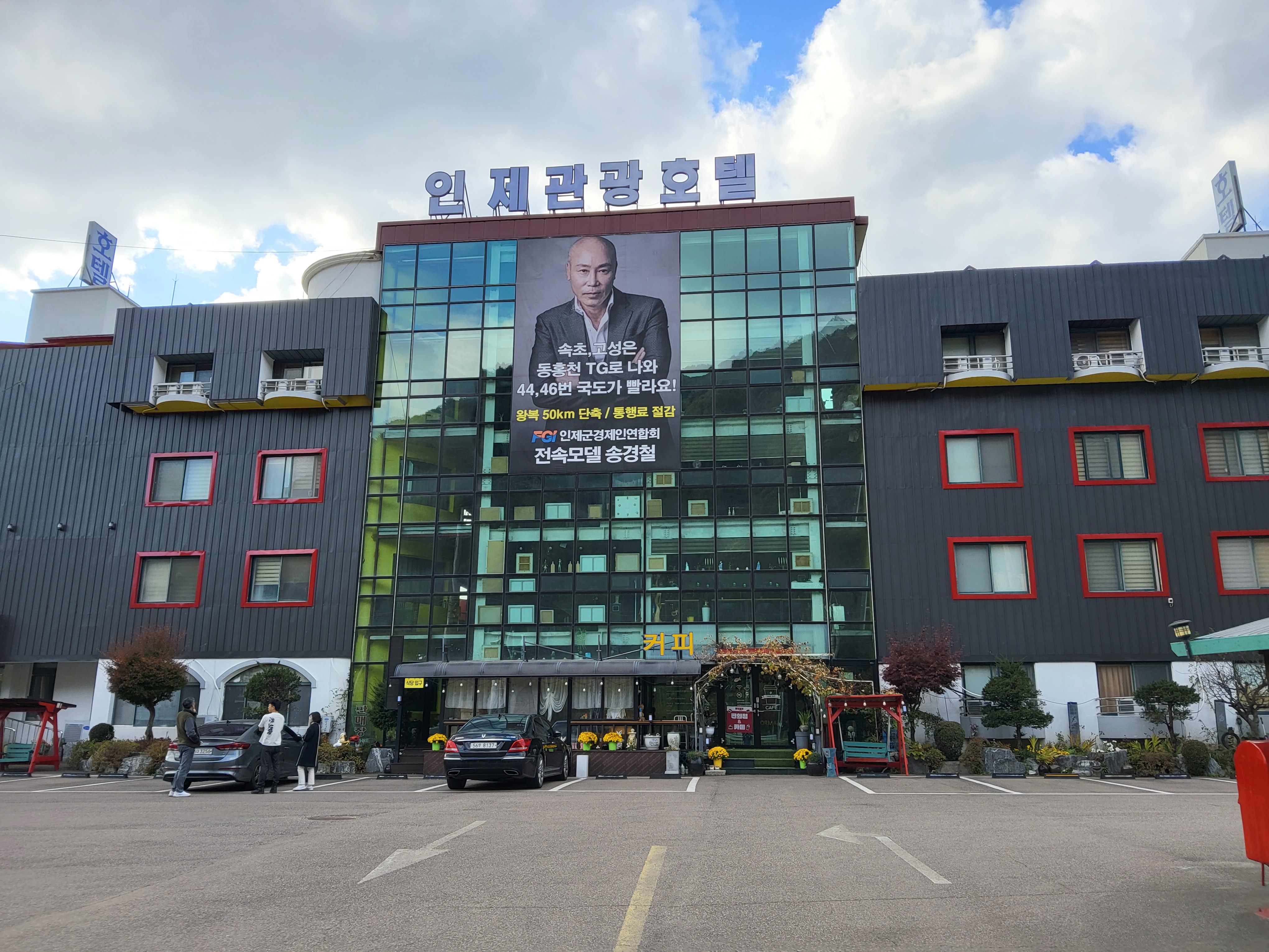 백골병단전적비 아래에 있는 버스정류장에서 버스를 기다리다가 지나가는 차를 손을 들어 세워 보았으나 대부분이 그냥 지나쳤다. 승용차 한 대가 멈추었기에 진부령까지 태워 주기를 말하였으나 그분은 여기서 멈추는 차였다. 하는 수 없이 버스를 기다리다가 다시 손을 들고 차를 세우니 그중에 한대가 멈추고 타라고 한다. 50대의 남자는 자신도 걷기를 좋아하여 우리나라 길을 엄청나게 많이 걸었다고 하였다. 학교 다닐 때부터 방학이 되면 배낭을 짊어지고 국토순례를 하였기에 내 모양을 보고 자신괴 동류의식이 생겨서 흔쾌히 차를 멈추었다고 하였다. 같은 취향을 가지고 있는 동류의식이 작용한 것이었다. 그 사람과 즐겁게 이야기하면서 편안하게 진부령고개에 있는 진부령미술관에 도착했다.