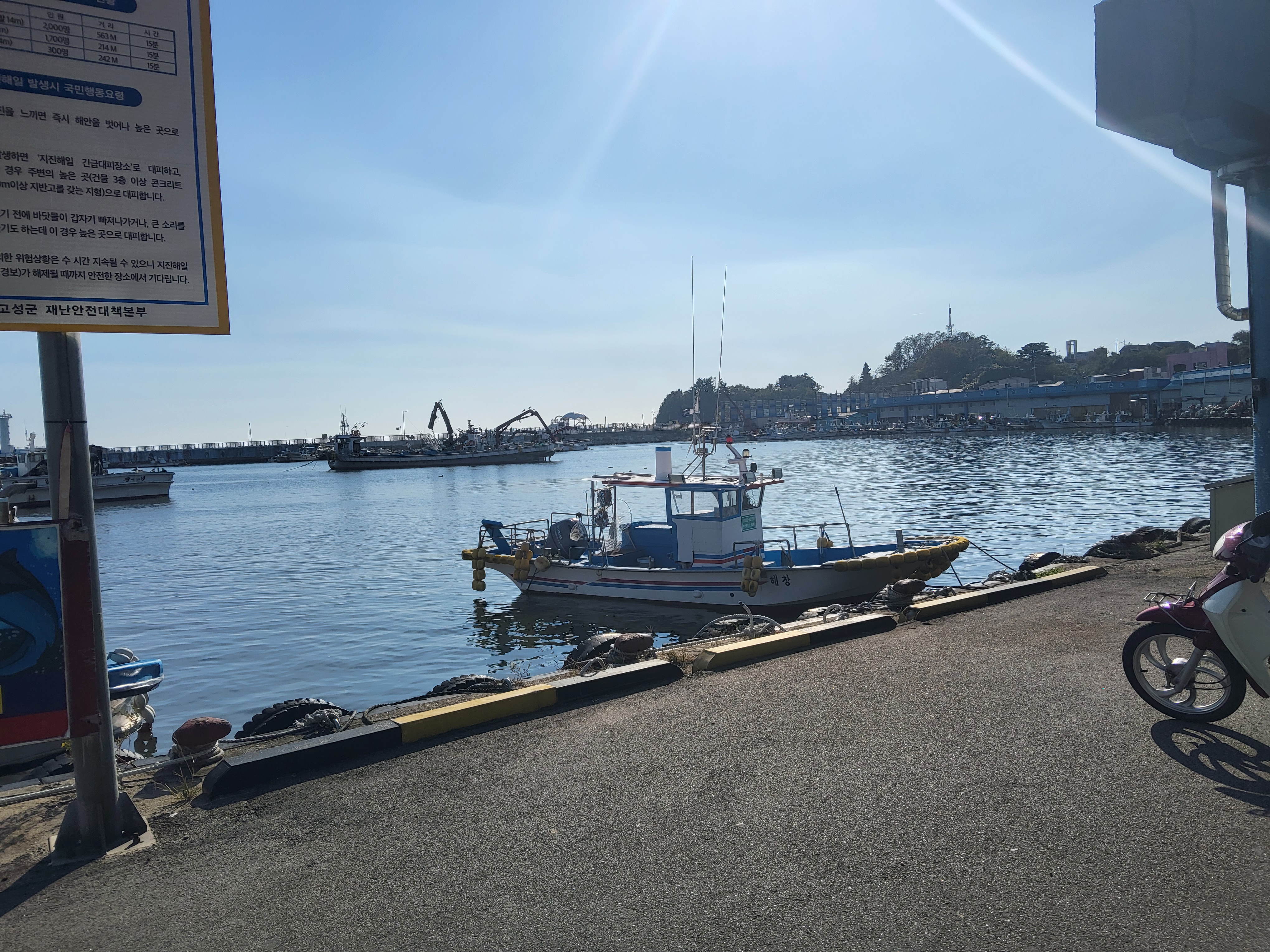 화진포해변을 지나 조금 걸으면 초도항이 나온다. 초도항은 화진포 해수욕장에서 조금만 위쪽으로 올라가면 나오는 아주 작은 항구로 성게가 특산물로 성게마을이라고 불리기 때문에 초도항 입구 간판도 성게 모양이다.