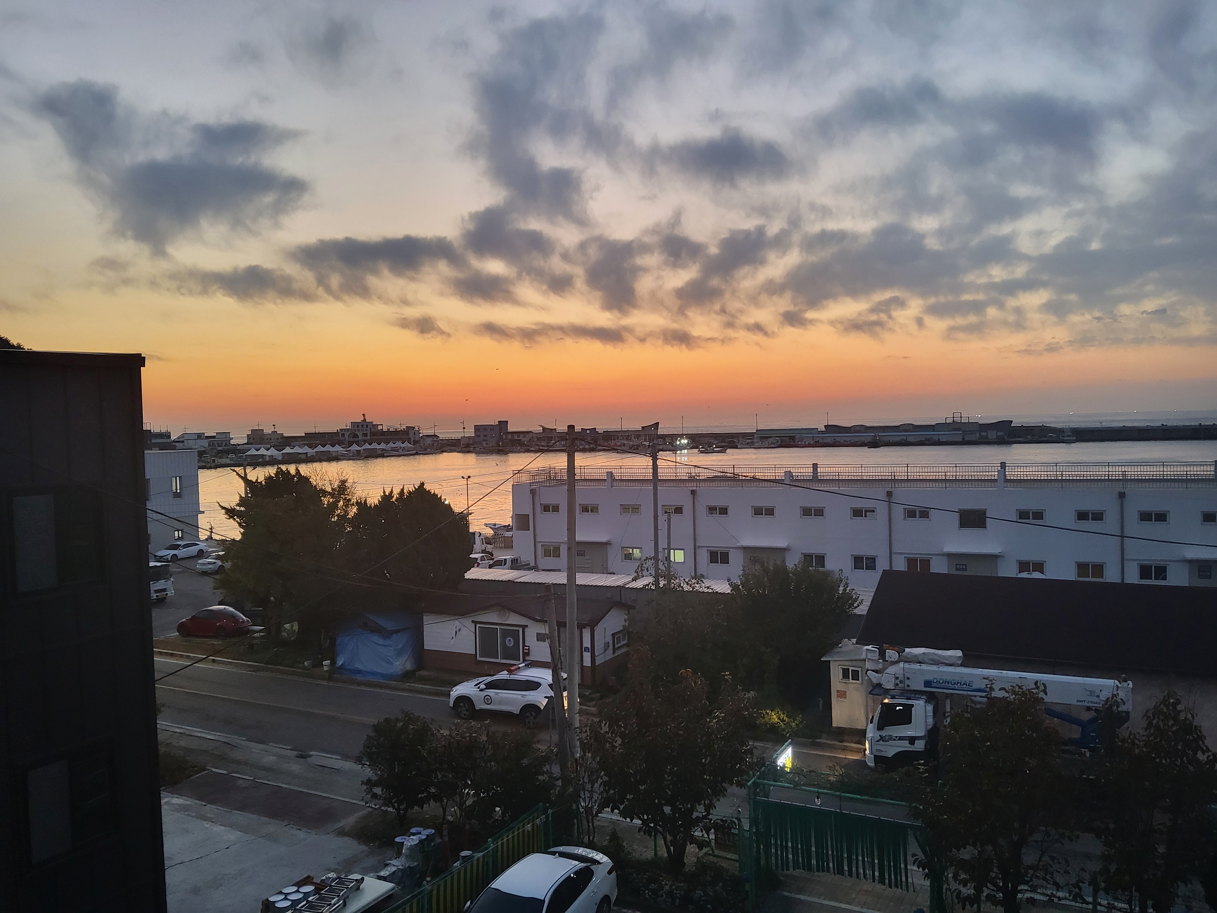 숙소 창을 열고 보는 해돋이 풍경