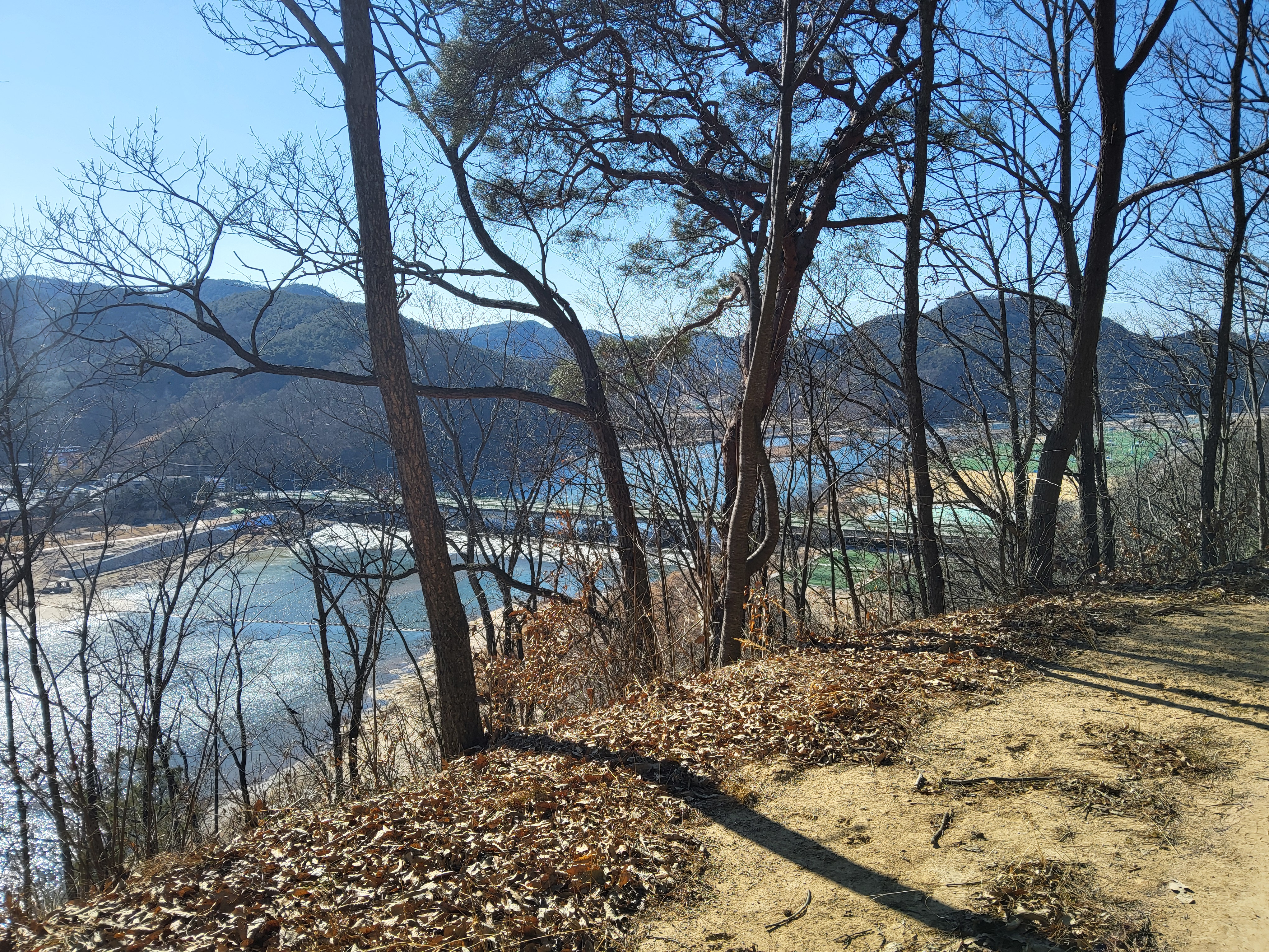 테크가 끝나는 지점에서 다시 작은 동산으로 올라가 걷다가 휴식처에서 황강을 보면서 쉬면서 한가롭게 하늘도 바라보고 여유롭게 흐르는 강물도 보고 하면서 대야성이라고 알려져 있는 작은 산을 돌아 내려왔다.