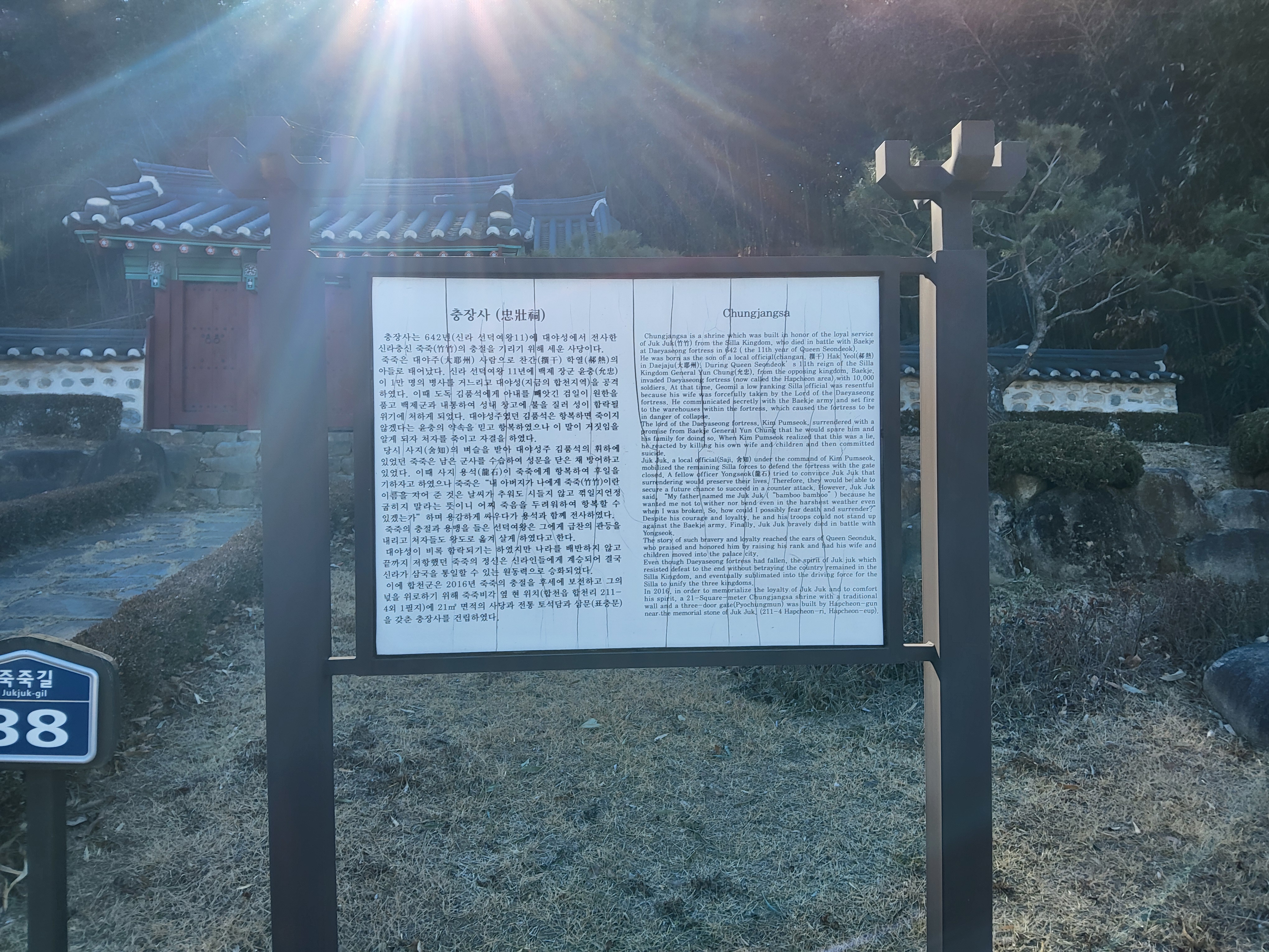 작은 산을 내려와 합천읍 버스정류장으로 걸음을 옮겼다. 차가운 겨울이지만 여유롭게 걸어가면서 이곳저곳을 보는 재미도 솔솔하였다. 길을 가면서 삼일운동기념비도 보고 죽죽의 충절비도 보인다.