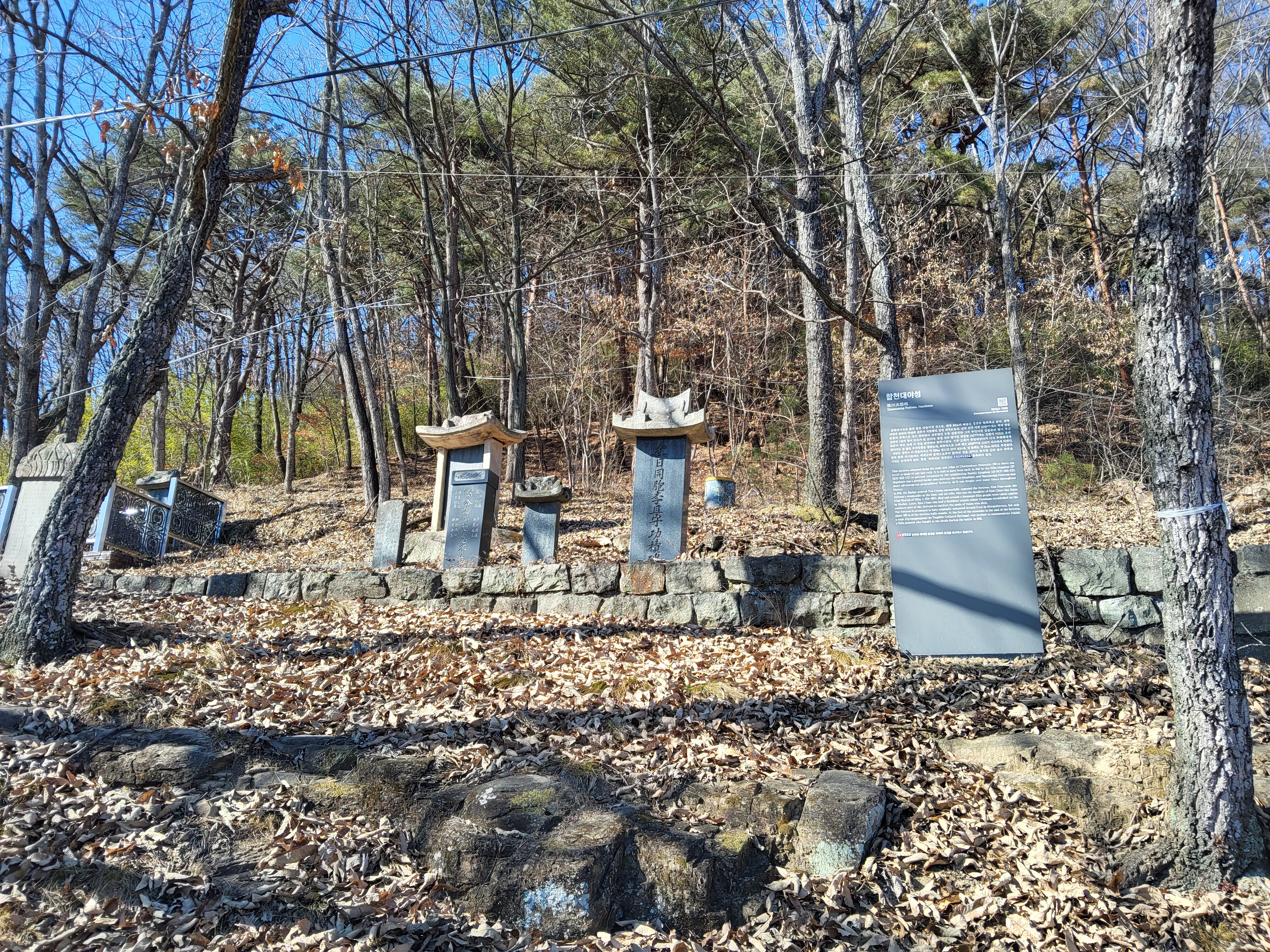 산문을 지나 조금 올라가니 황강을 바라보는 언덕에 황강시비가 있고 그 옆에 합천대야성 설명판이 있다.